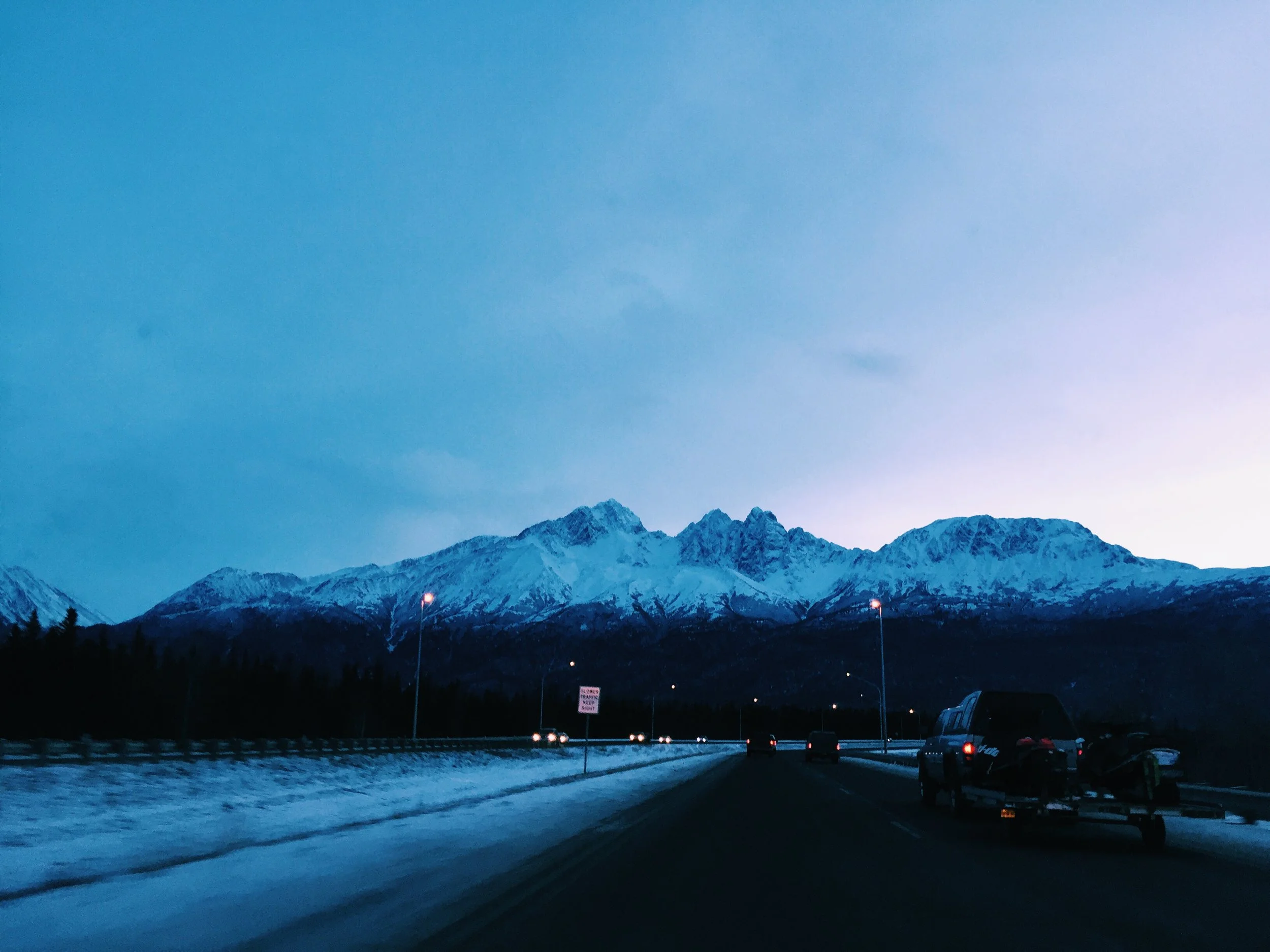 Fast forward to December 26, 2015, I was standing in the Anchorage airport, staring through enormous panels of windows to the Chugach mountains they framed. Liz burst through the doors moments later, and soon we were on the road.